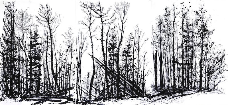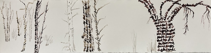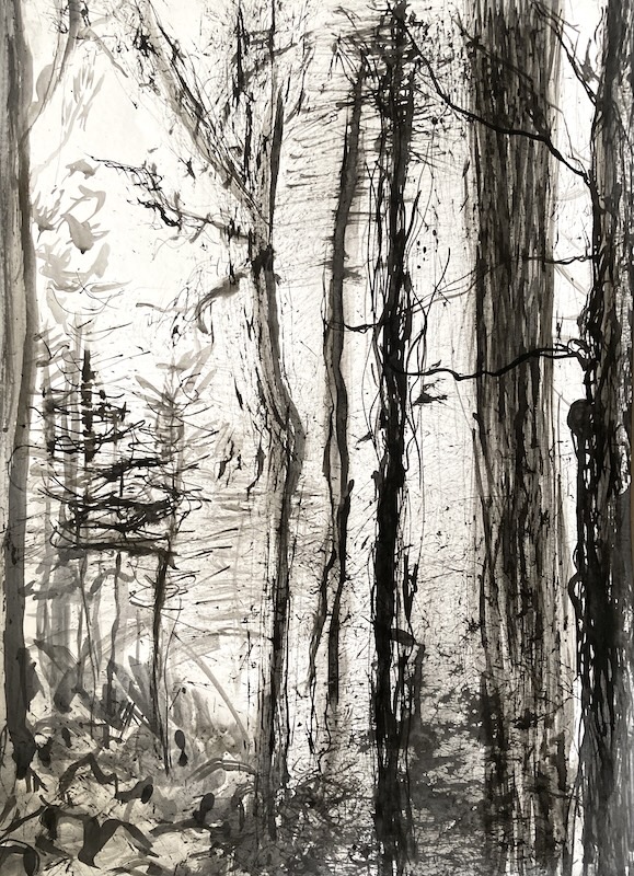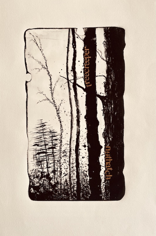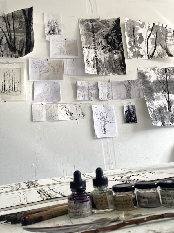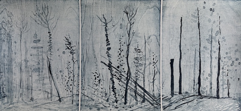 Drawing trees in ink using the twigs as my drawing tools is something I return to again and again. These may result in finished images or may also be used as a resource for different types of printmaking such as Mokulito and Lithography.